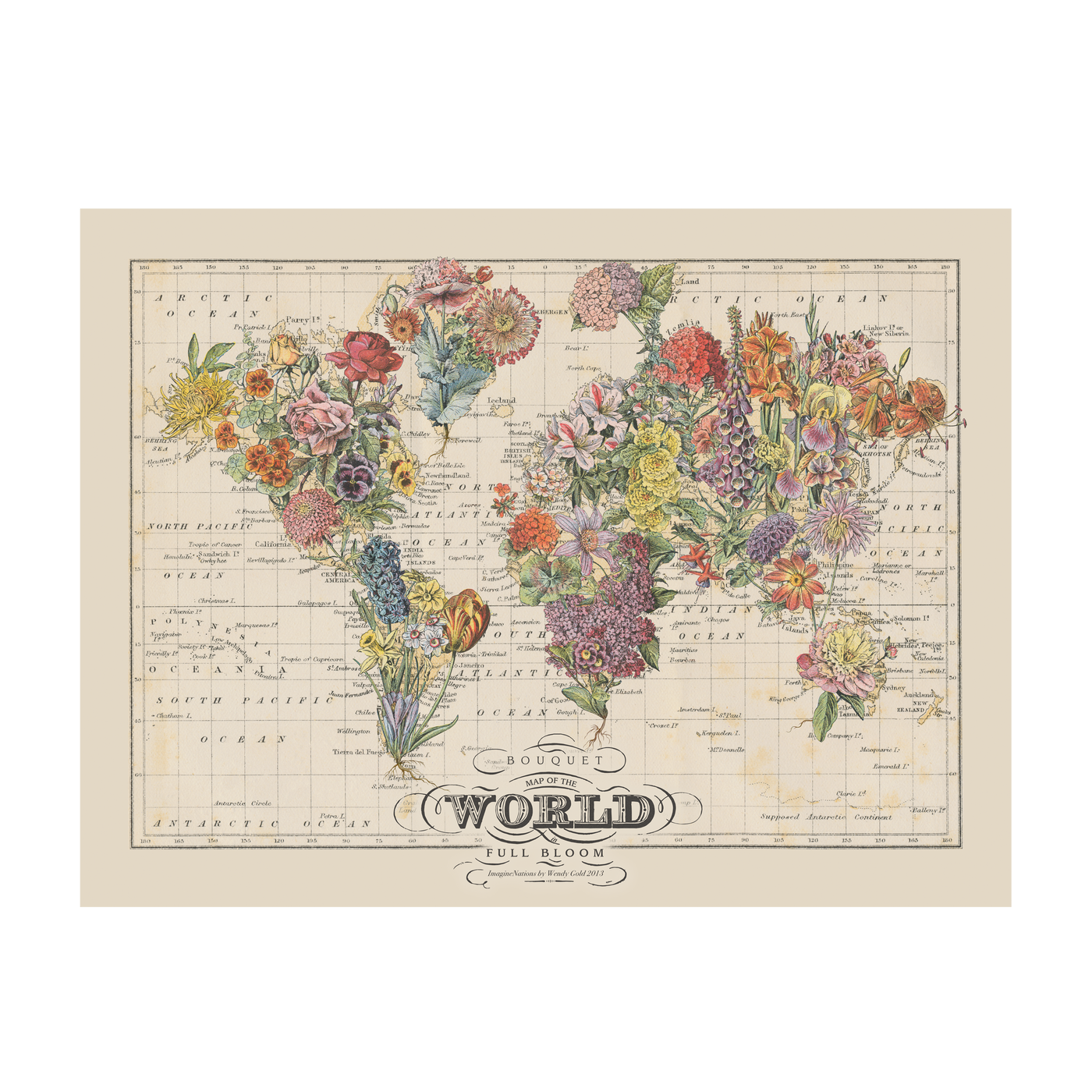 Bouquet Map Print | Floral map, Vintage maps art, World map art