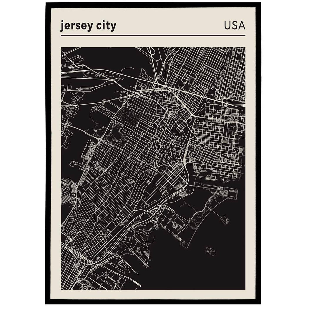 Jersey City USA black and white city map poster โ HypeSheriff