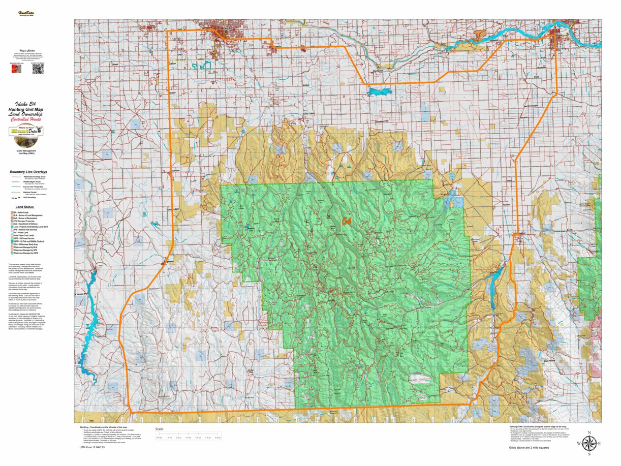 Idaho Controlled Elk Unit 54 Land Ownership Map by Idaho HuntData